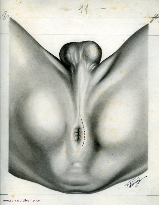 - Nota: Corresponde a la fig. 153, pág. 311 del libro “Patología Urogenital. Cáncer de próstata”. Ed. Miguel Servet. Barcelona, 1944.
