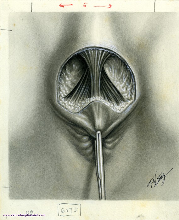 - Nota: Corresponde a la fig. 113, pág. 289 del libro “Patología Urogenital. Cáncer de próstata”. Ed. Miguel Servet. Barcelona, 1944.