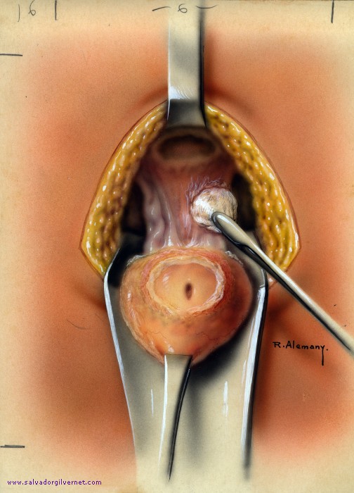 - Nota: Corresponde a la fig. 129, pág. 293 del libro “Patología Urogenital. Cáncer de próstata”. Ed. Miguel Servet. Barcelona, 1944.