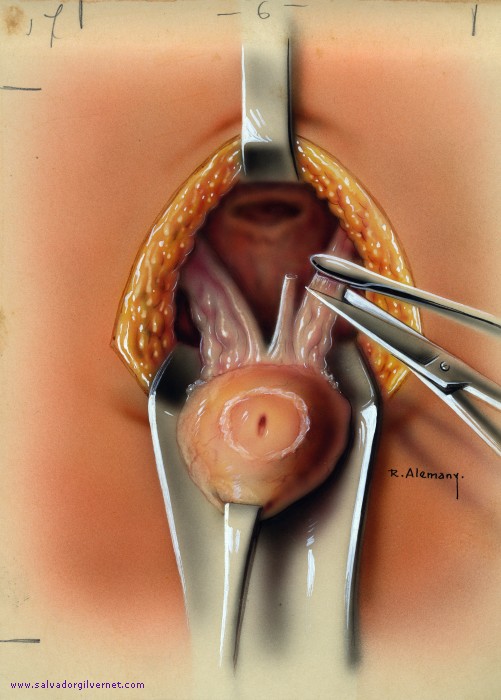 - Nota: Corresponde a la fig. 130, pág. 294 del libro “Patología Urogenital. Cáncer de próstata”. Ed. Miguel Servet. Barcelona, 1944.