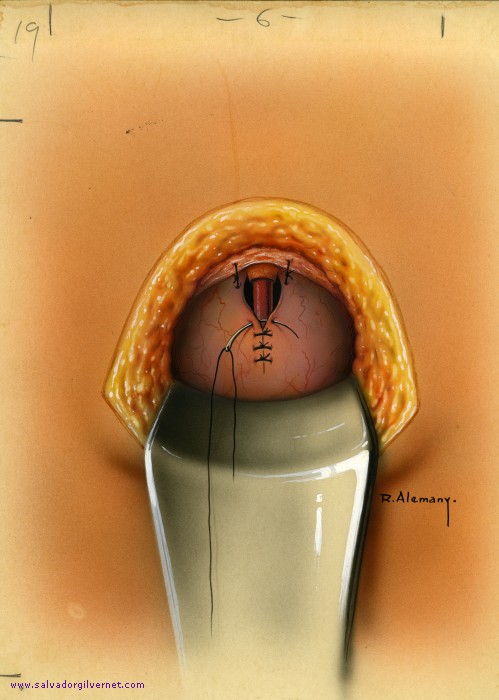 Sutura de la cara posterior del cuello vesical.