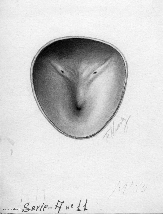 Vejiga Serie A11 Sección transversalAdulto F. Nuñez. ca. 1945 Técnica mixta sobre papel. 16 x 12 cm. Trígono y cuello vesical.