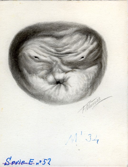 Vejiga Serie E52 Sección transversalAdulto F. Nuñez. ca. 1940 Técnica mixta sobre papel. 16 x 12 cm. Trígono y cuello vesical.