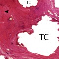 Detalle 1: Cavernas en lóbulo izquierdo (TC). Foco de necrosis caseosa (NC) rodeado por tejido fibroso (cabezas de flecha). Conducto eyaculador izquierdo tuberculizado (ED)