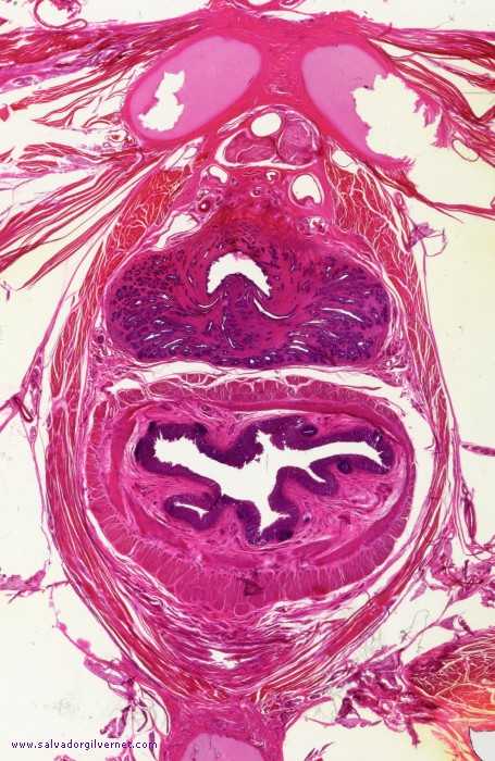 - Sección transversal oblícua a nivel del polo inferior del veru montanum