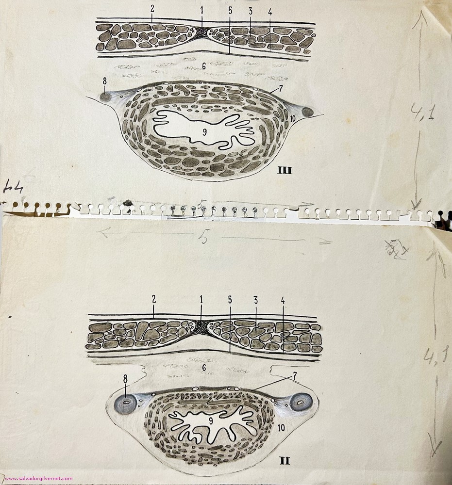 Disposición de la aponeurosis umbilicovesical Autor desconocido Técnica mixta sobre papel. 21 x 12 cm. Esquema II. Corresponde a la figura 170 de la página 331 del capítulo 12, Anatomía quirúrgica prostatoperineal, del libro Patología Urogenital, en el tomo I, Cáncer de próstata (Ed. Miguel Servet, Barcelona, 1944). [Ver la ilustración en el libro] Esquema III. Corresponde a la figura 171 de la página 331 del capítulo 12, Anatomía quirúrgica prostatoperineal, del libro Patología Urogenital, en el tomo I, Cáncer de próstata (Ed. Miguel Servet, Barcelona, 1944). [Ver la ilustración en el libro]